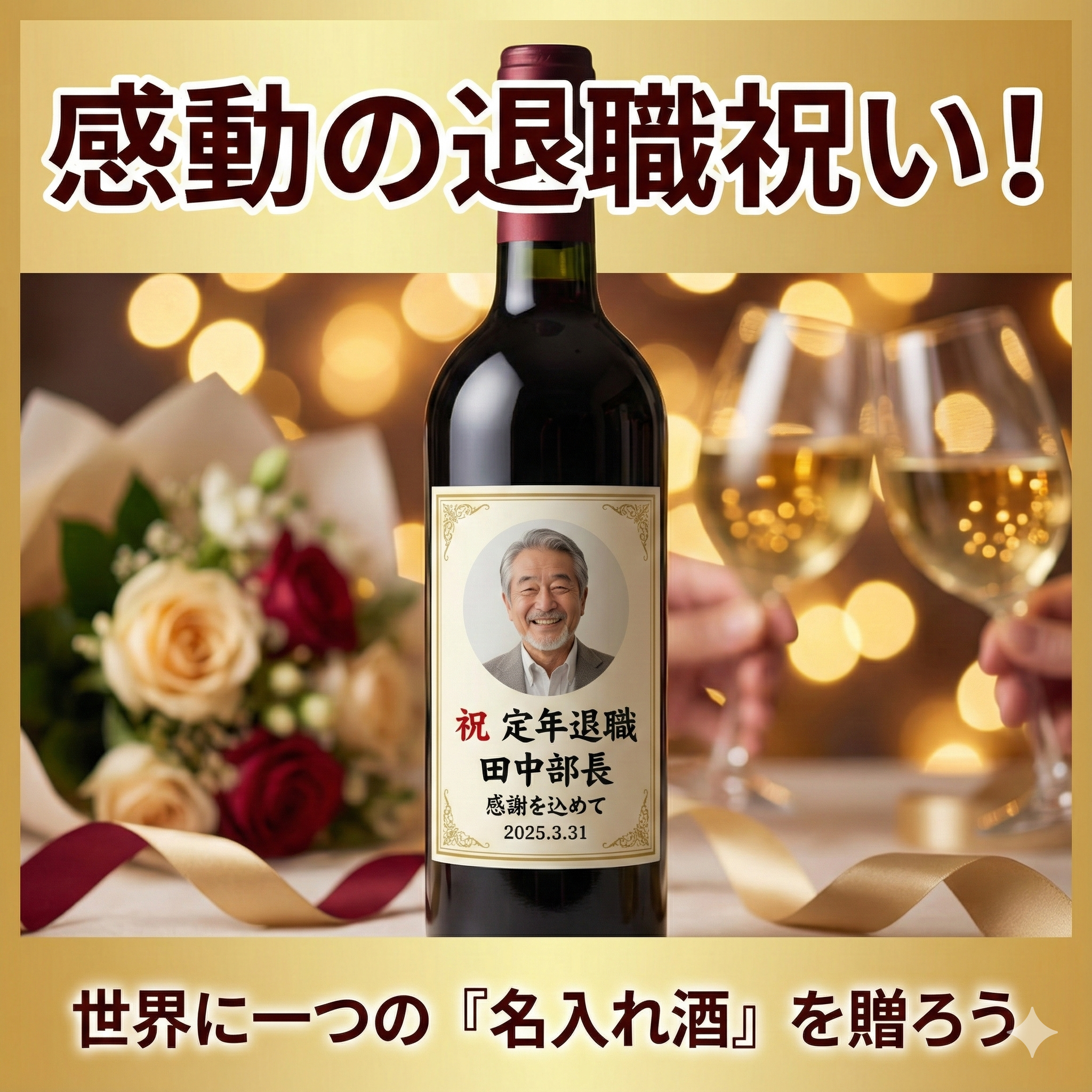 突然の送り物に驚きましたが、記念に残る物になりました。写真ラベルの瓶は、大切に飾らせて頂きます。