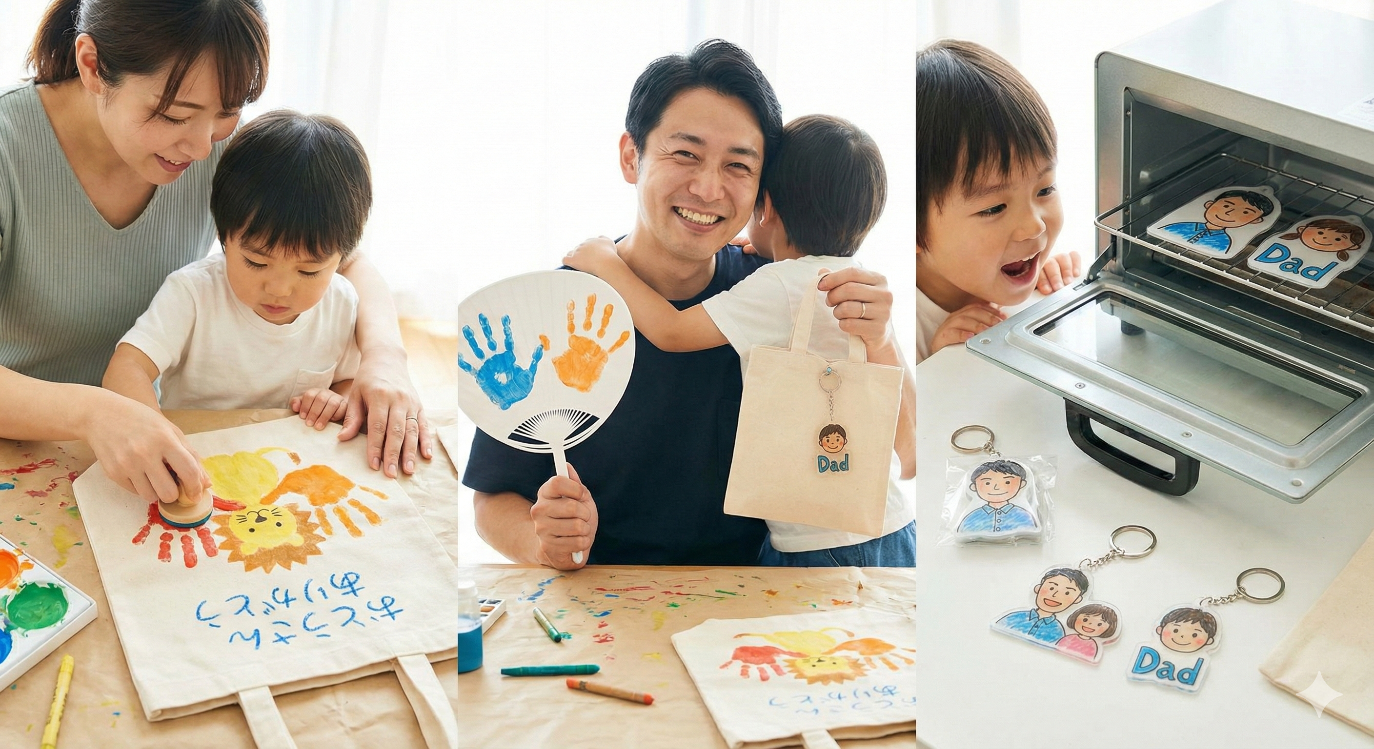 - プラ板キーホルダー:子供の描いた似顔絵をプラ板に写して焼くだけ。お父さんのカバンや鍵につけてもらえます。
