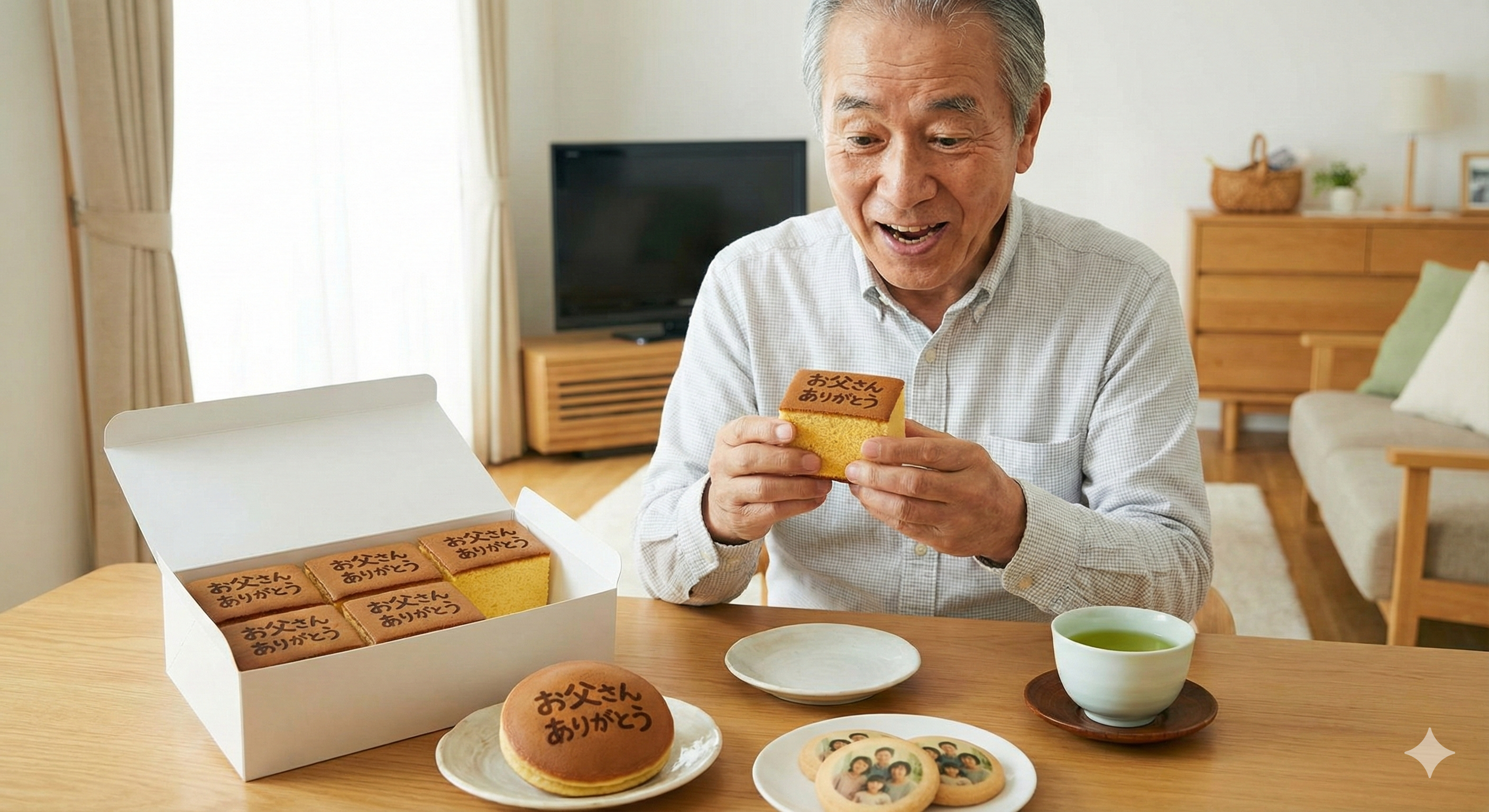 - カステラ・どら焼き:表面に「お父さんありがとう」の焼印やメッセージを入れることができます。