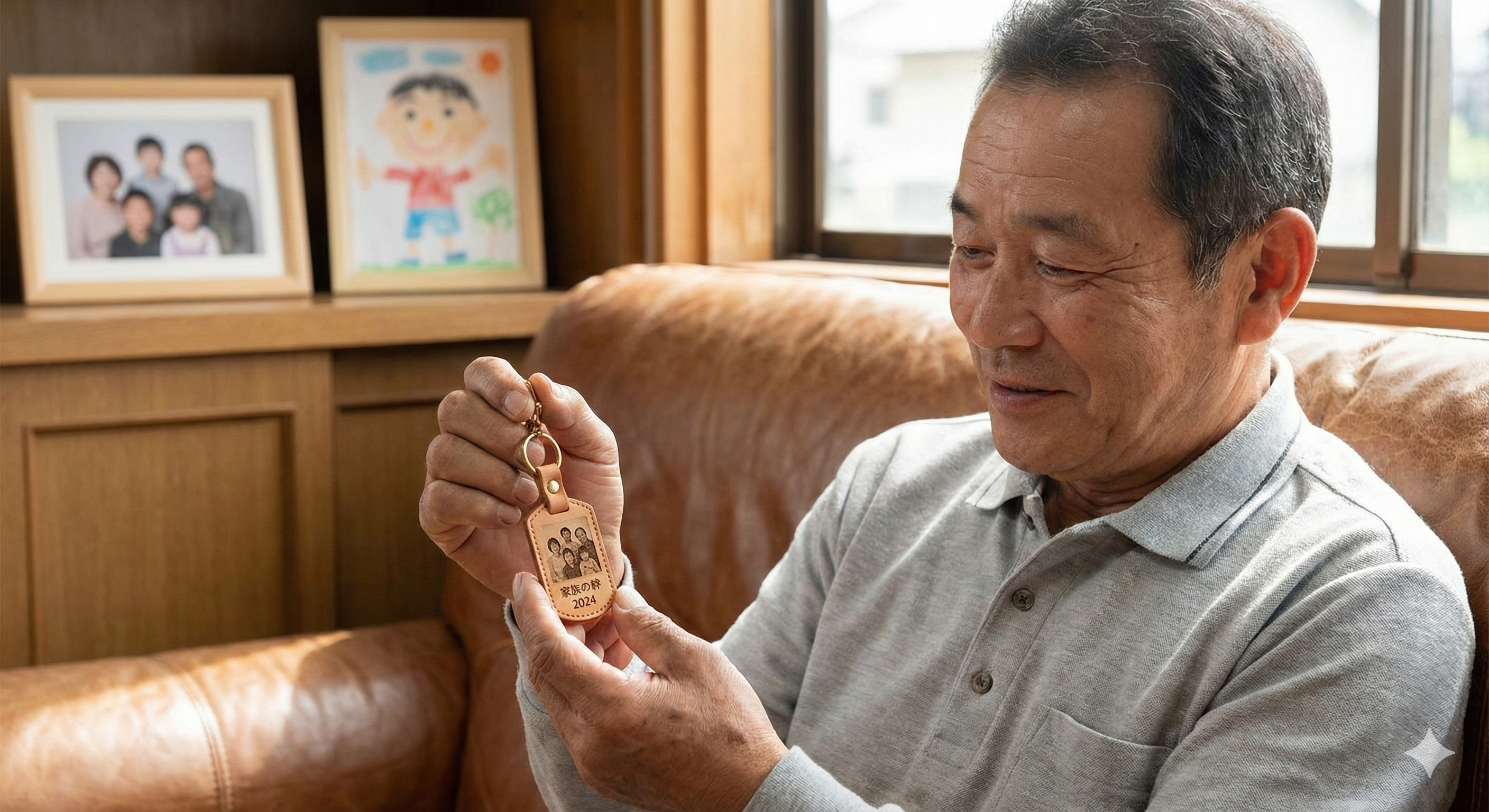 孫のドアップ写真や、「世界一のパパ」といった熱いメッセージでもOK。家の中ならデレデレできます。
