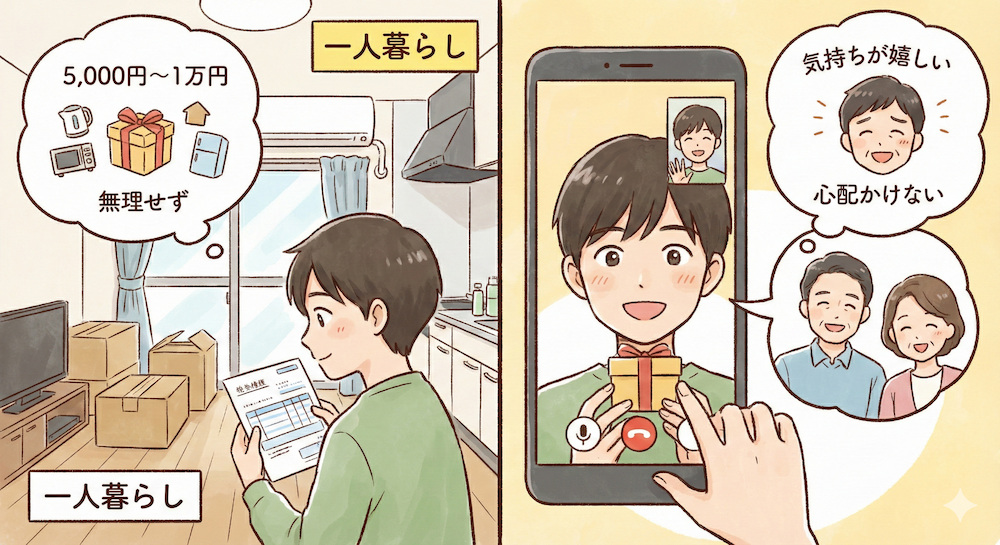 - 予算相場: 一人暮らしなら5,000円〜、実家暮らしなら3万円〜が目安。