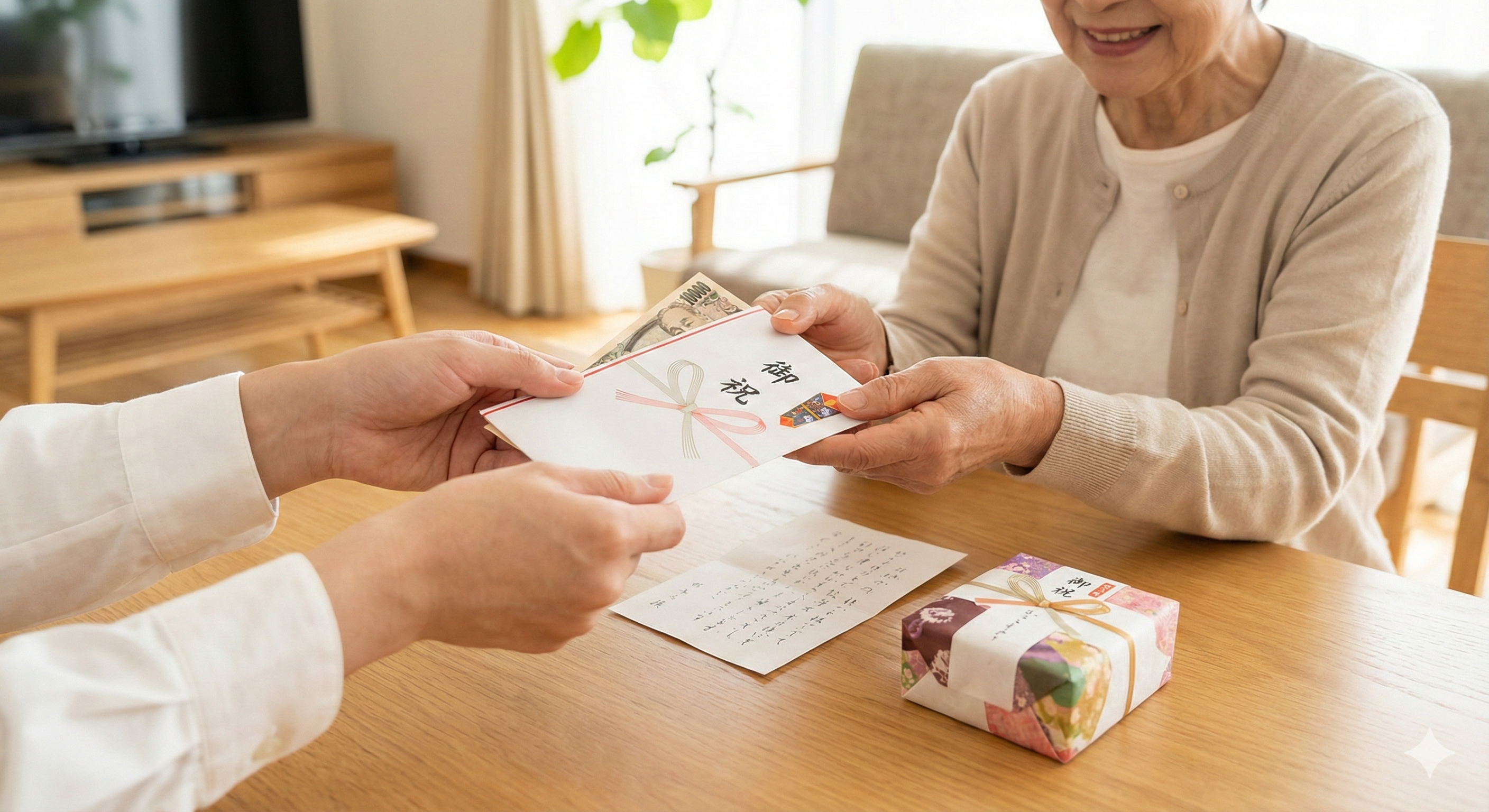 ただし、親子間であれば「これで美味しいものでも食べて」と渡すことは珍しくありません。現金を渡す場合は、そのまま渡すのではなく必ず「のし袋」に入れ、手紙や小さなお菓子などの「形に残るもの」を添えると、事務的な印象にならず気持ちが伝わります。