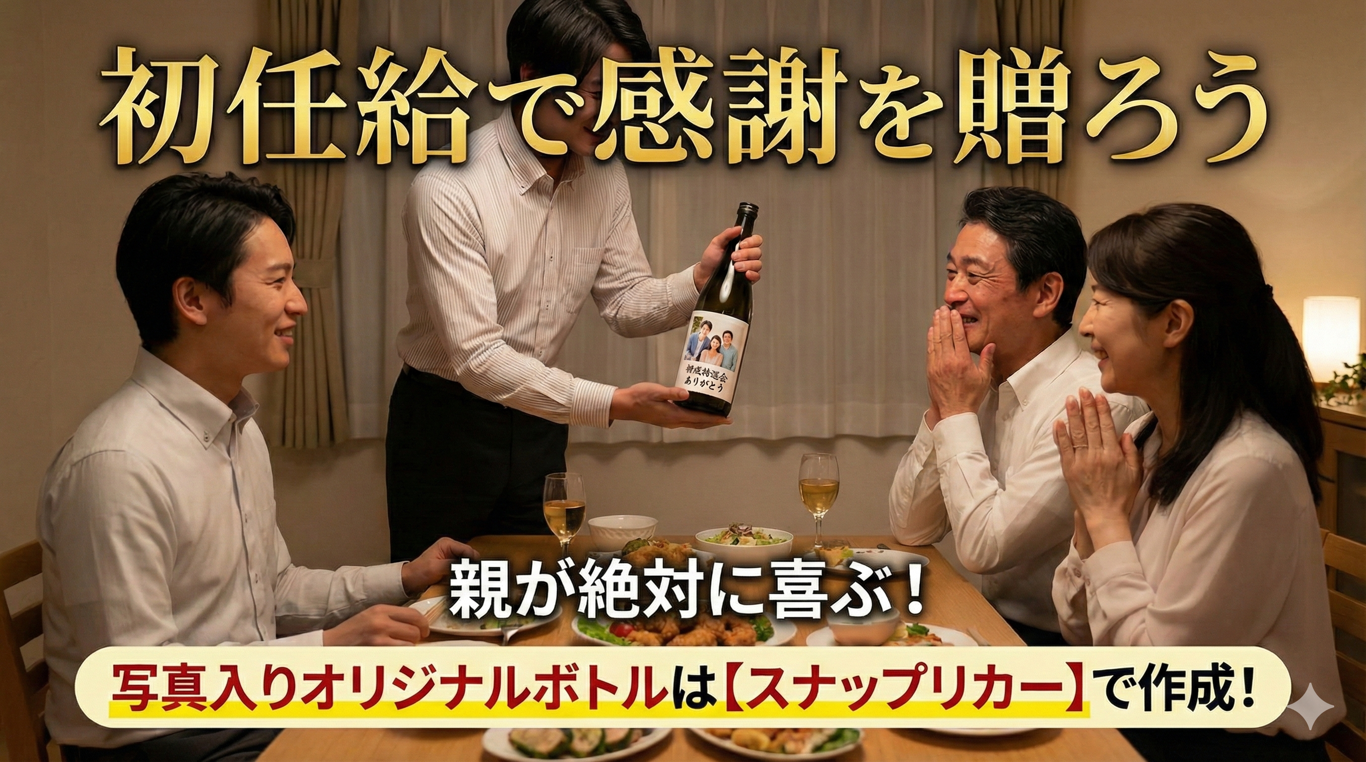 - おすすめ: 照れくさい感謝を伝えるなら、メッセージ入りの「オリジナルボトル」で乾杯を。