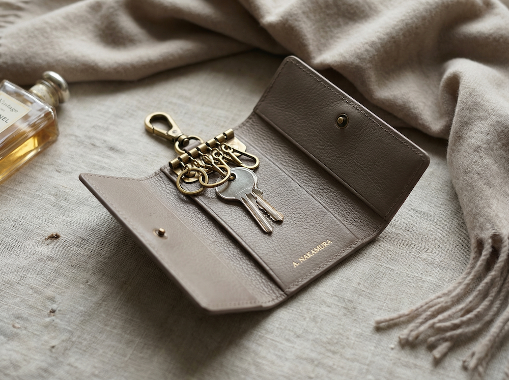 毎日使うからこそ、使うほどに手に馴染む上質なレザーアイテムは喜ばれます。名入れのポイントは、外側の目立つ表面ではなく、内側にひっそりと刻印をすること。ふとした瞬間に自分だけの特別なアイテムだと感じられる、大人っぽくて粋な選び方です。引っ越し祝いや、車の免許取得祝いなどにもぴったりですね。