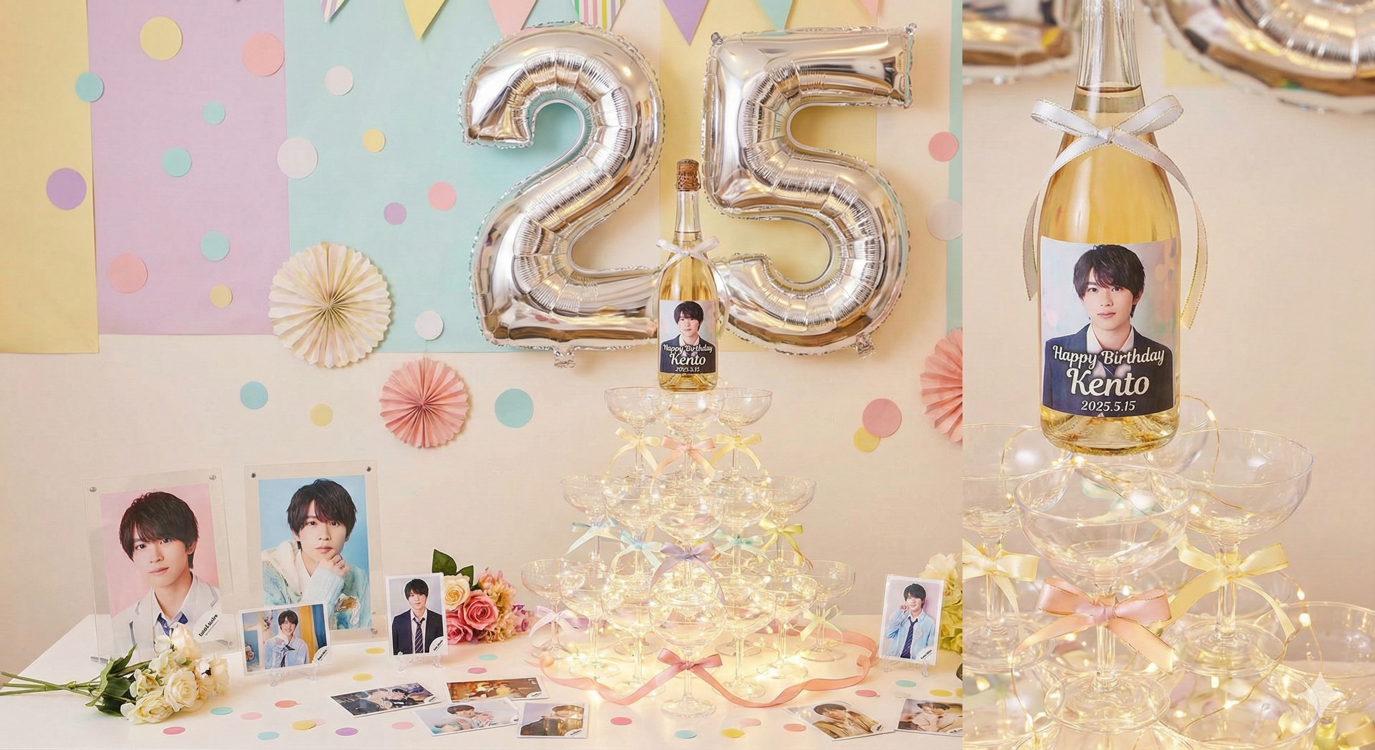 次の推しの誕生日や記念日には、ぜひ自分だけのオリジナルグッズを作ってみてください。特に、推しの写真とカラーで彩られたオリジナルボトルでの乾杯は、きっと忘れられない素敵な思い出になるはずです。