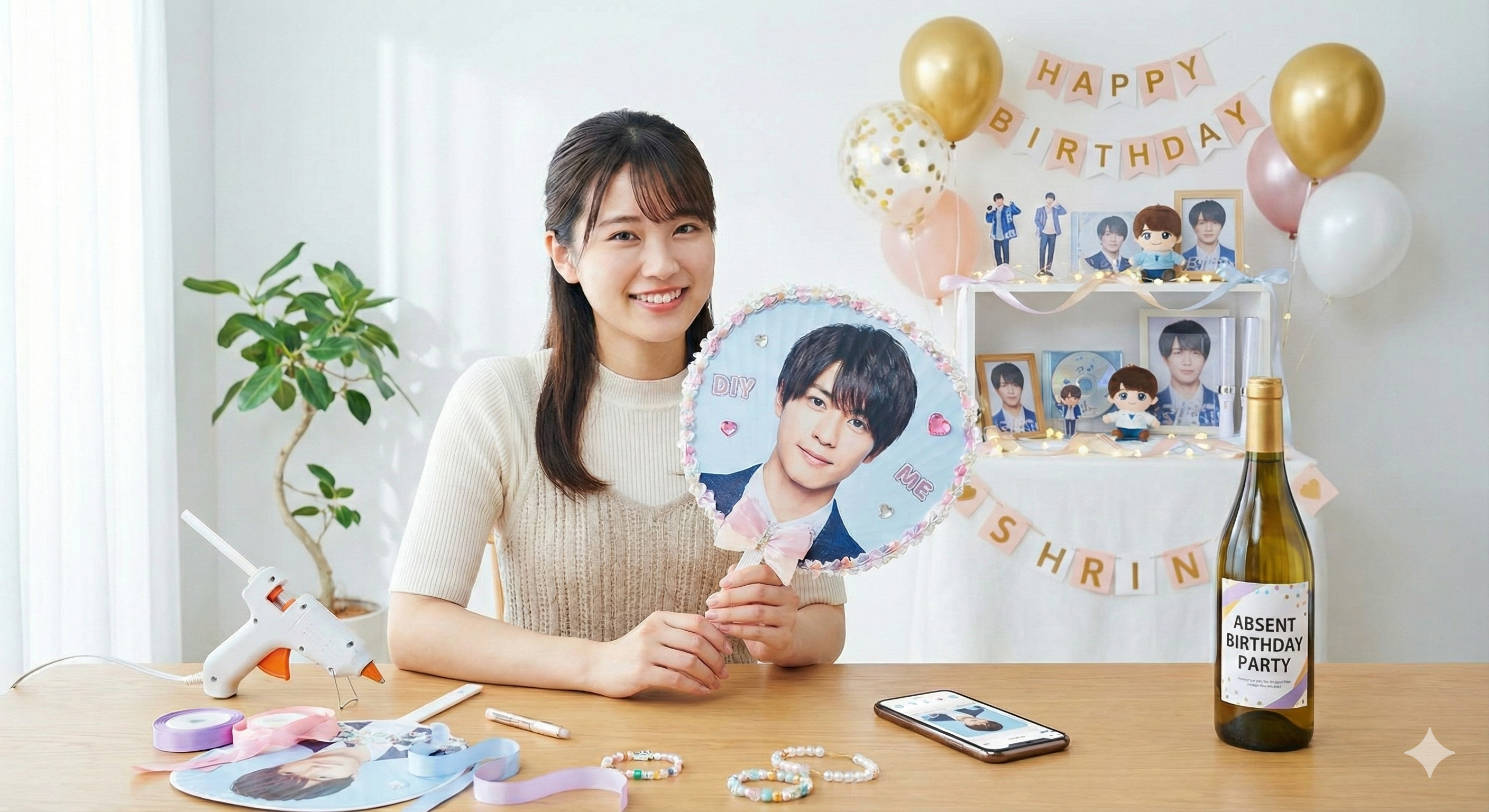 グッズは「作る」だけでなく、「飾る」ことでその魅力が最大化されます。特に推しの誕生日を祝う「本人不在の誕生日会」では、自作グッズを並べた「祭壇」作りが一大イベントとなります。