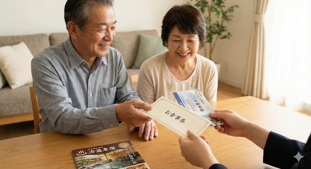 「モノ」ではなく「思い出」を贈るカタログギフト。 温泉旅行やレストランでの食事券など、退職後の自由な時間を楽しんでもらえるプランが充実しています。